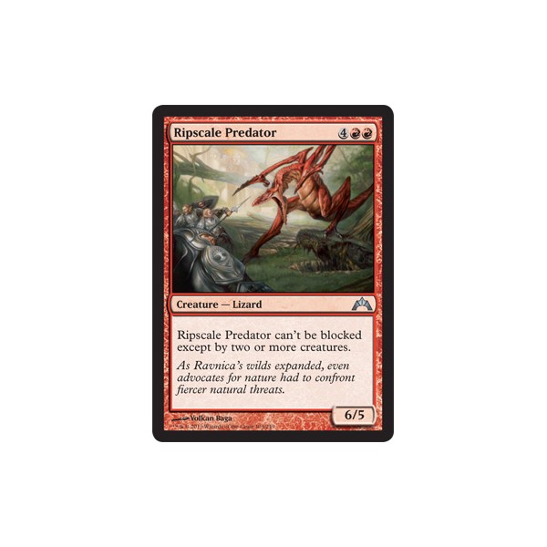 Text na kartě: Ripscale Predator can't be blocked except by two or more creatures.