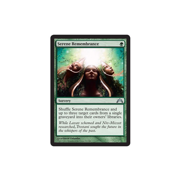 Text na kartě: Shuffle Serene Remembrance and up to three target cards from a single graveyard into their owners' libraries.