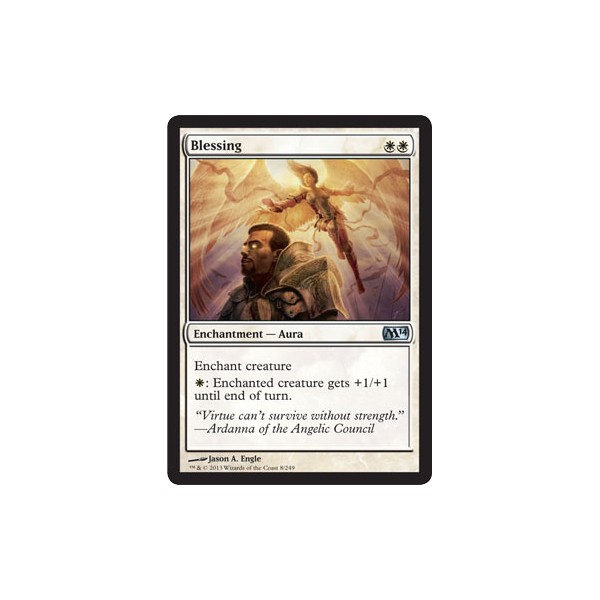 : Enchanted creature gets +1/+1 until end of turn. Příběhový text karty: "Virtue can't survive without strength."—Ardanna of the Angelic Council