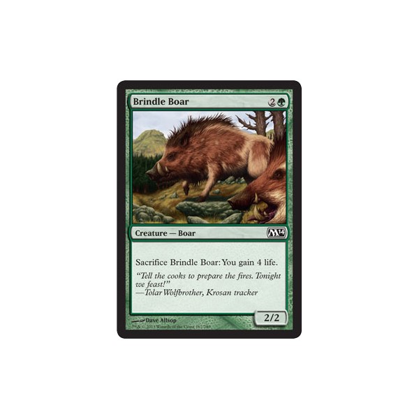 Text na kartě: Sacrifice Brindle Boar: You gain 4 life.