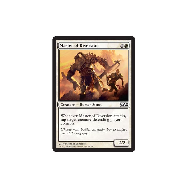 Text na kartě: Whenever Master of Diversion attacks, tap target creature defending player controls.