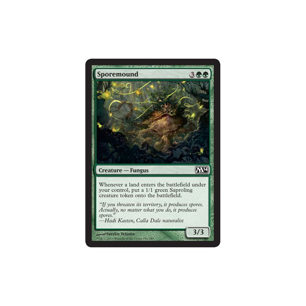 Text na kartě: Whenever a land enters the battlefield under your control, put a 1/1 green Saproling creature token onto the battlefield.