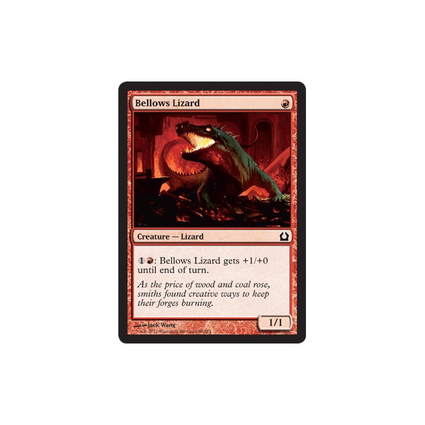 : Bellows Lizard gets +1/+0 until end of turn. Příběhový text karty: As the price of wood and coal rose, smiths found creative ways to keep their forges burning.